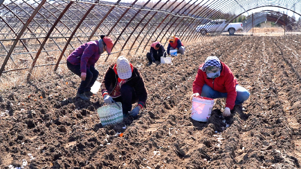 工人杨美华说:“我们来栽大蒜,一天能挣一百多块钱。在家闲着也是闲着,这一天出来,心情好了,钱也挣了,多好!”