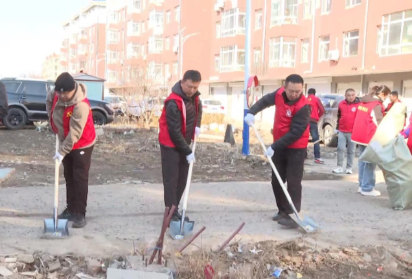 工作人员清扫小区垃圾(绥棱县委宣传部供图)