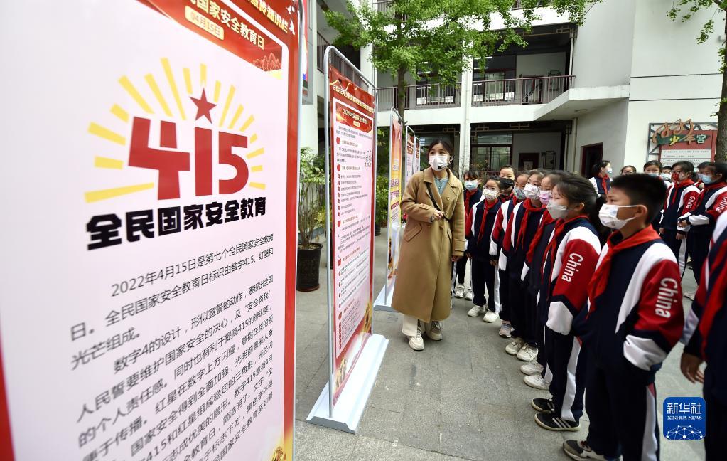 4月15日,在安徽省合肥市逍遥津小学金都华庭校区,老师为同学们普及国家安全知识。