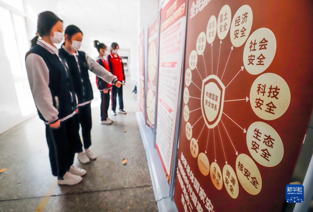 4月15日,河北省遵化市第三中学的学生在观看国家安全相关知识展览。