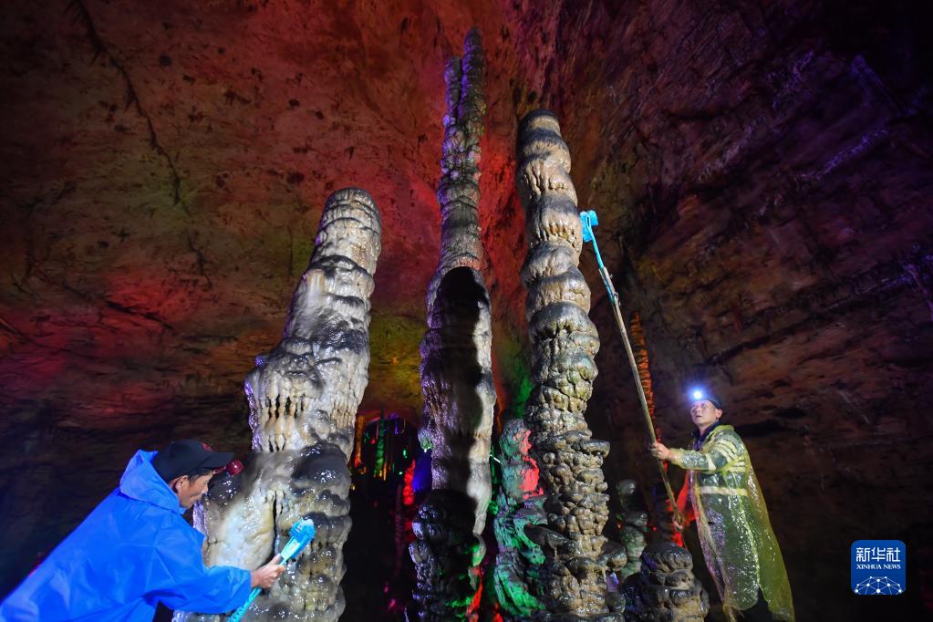 在湖南省张家界市武陵源区黄龙洞景区有一群钟乳石“美容师”,他们定期对钟乳石上的苔藓和其它杂物进行清理,呵护钟乳石的自然生长,让它们以良好的状态展现在游客眼前。