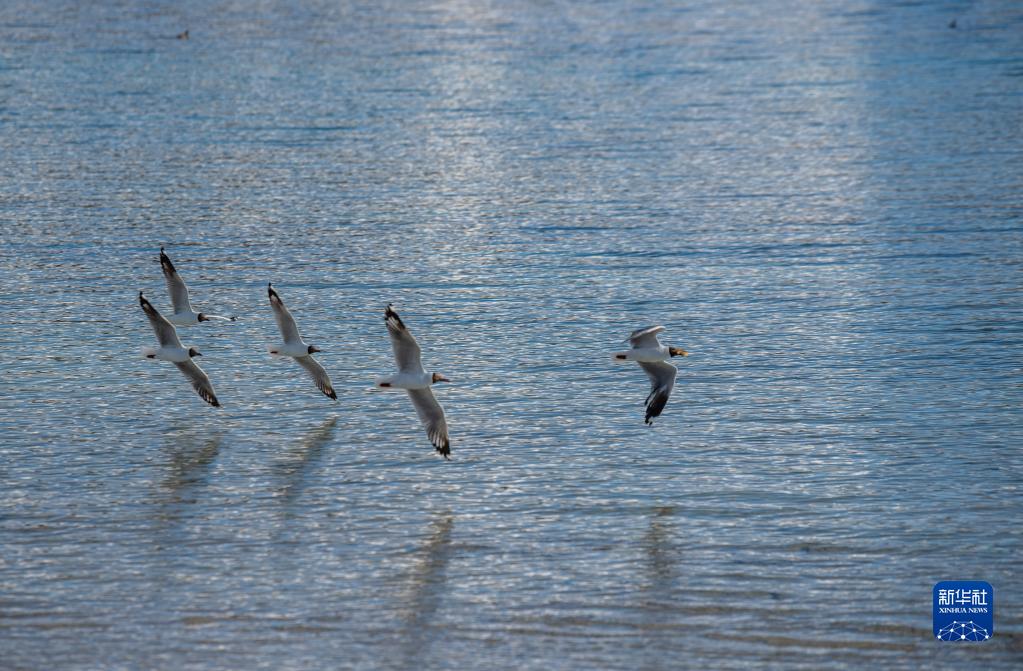 水鸟在羊卓雍错湖面滑翔(7月2日摄)。