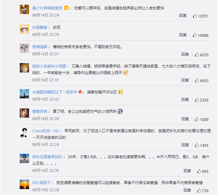 网友评论:又骗人结婚,明明单身更年轻,结了婚每天操持家里,七大姑八大姨双倍烦恼,当了妈的,一年就能老十岁,辅导作业更能让你提前上西天!