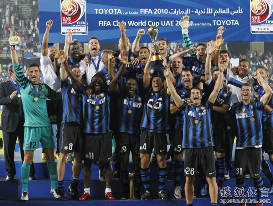 北京时间12月19日凌晨,国际米兰代表着欧洲,最终以潘德夫、埃托奥和小将比亚比亚尼的进球3-0完胜非洲冠军马赞姆贝队夺得世俱杯,加冕意甲联赛-意大利杯-欧冠-意大利超级杯-世俱杯的“五冠王”称号!成为意大利第一支“五冠王”!